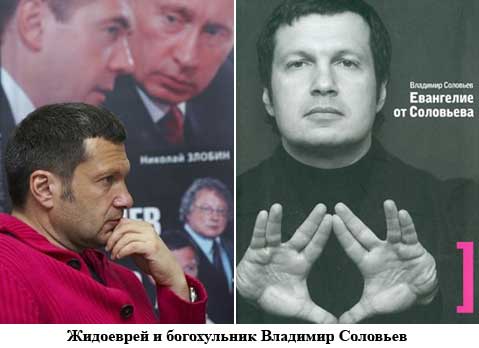 Масонское словонедержание "Евангелие от Соловьева"Немного биографии: Владимир Соловьев (48 лет) - российский журналист, теле и радио ведущий, публицист, певец и общественный деятель, кандидат экономических наук и член элитного масонского клуба - президиума Российского еврейского конгресса. Первый класс Владимир учился в 72-й школе Москвы рядом с домом. Начиная со второго класса, учился в элитной спецшколе № 27 с изучением ряда предметов на английском языке, где учились дети и внуки членов ЦК КПСС, дипломатов и др. С 1990 года преподавал экономику в университете штата Алабама. В 1992 году вернулся в Россию, занимался бизнесом. Отец семерых детей (от трёх жён). Соловьеву этого «Евангелия» показалось недостаточно, и он продолжил делиться масонскими сокровенными мечтами дальше. ![]() В качестве члена Российского еврейского конгресса, масона и сатаниста, Соловьев отличился, написав книгу «Евангелие от Соловьева» (2005, переиздана в 2007). Знаете, чем отличаются масоны от обычных людей? Словонедержанием, как следствием неумеренной гордости и самомнения. Масоны спать спокойно не могут от того что некому даже оценить их «достижения» в той или иной области. Так как не выпятив свое я, они тут же погружаются в депрессию. И вот в порыве очередного словонедержания Соловьев поделился с миром чаяниями еврейского народа.
