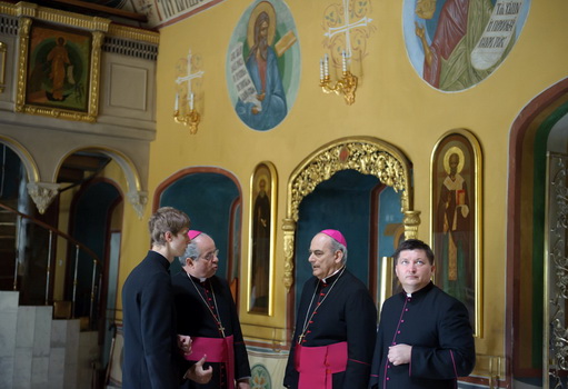 Очередной набег латинян на Троице-Сергиеву лавру (ФОТО)11 июня 2012 года Троице-Сергиеву Лавру и Московскую духовную академию посетили католический «архиепископ» Марсело Санчес Сорондо, канцлер папской Академии наук, прибывший в Россию по приглашению Российской Академии Наук и сопровождавшие его – папский нунций в Российской Федерации Иван Юркович и монсиньор Андрей Юзвович.