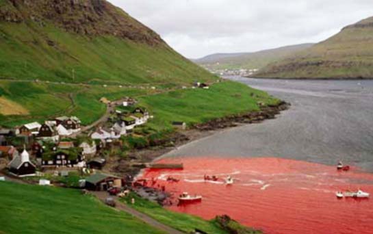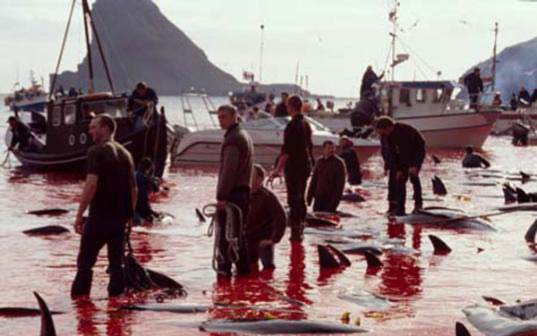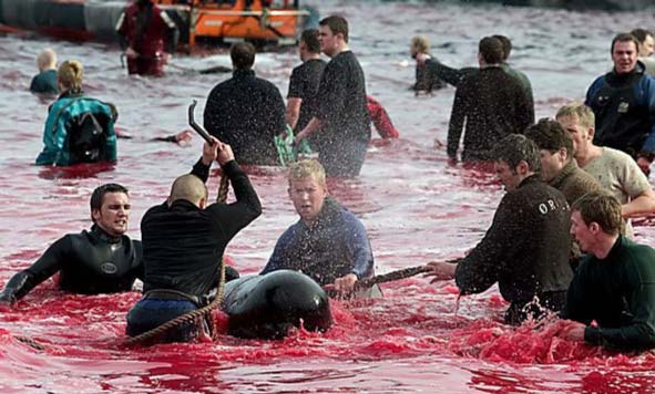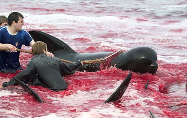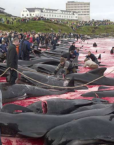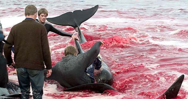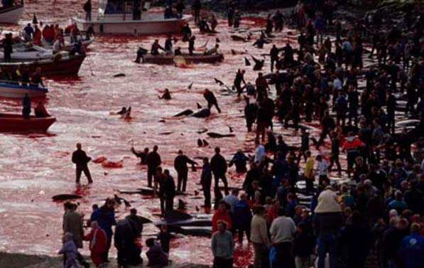 А из-за человеческой жестокости (цивилизованных людей), убивающих сотни известных своим интеллектом Калдеронских дельфинов (Гринды). И это происходит каждый год на Фарерских островах в Дании. Главные участники этого жестокого побоища - молодые подростки.
