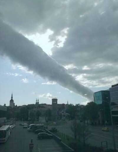 Где-то в середине октября 2010 года, утром видел низкую облачность, образованную из химтрейлов, но не сплошную, а с разрывами. В разрыве облаков было видно облако на большей высоте, которое в лучах солнца светилось горизонтальными полосами ярких желтого и зеленого цветов. Цвета не смешивались, но каждый цвет был в виде отдельной полосы.