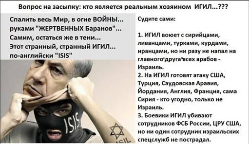 ТВОРЦЫ КАТАКЛИЗМОВ ВСЕ ТЕ ЖЕ... ИГИЛ создан и контролируется ИзраилемДоказанный факт - Главарь ИГИЛ, назвавший себя «халифом Абу Бакр