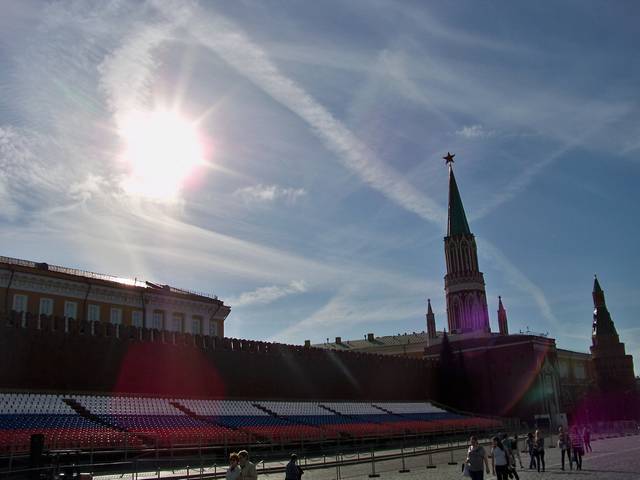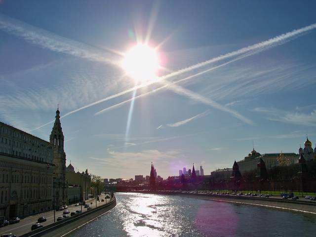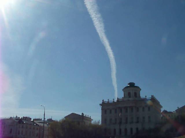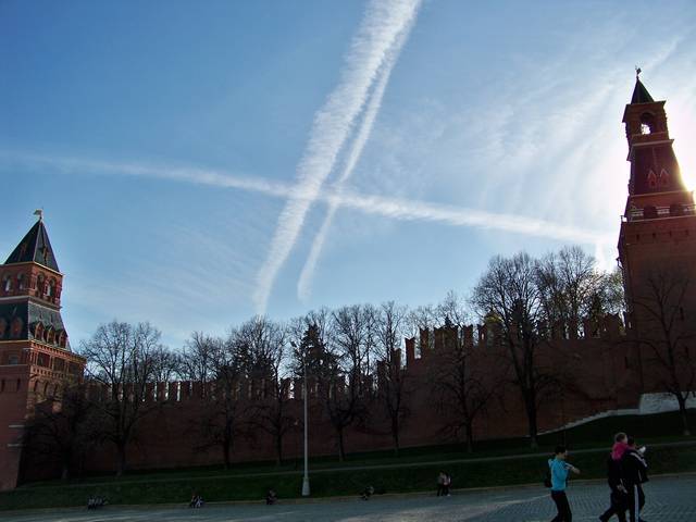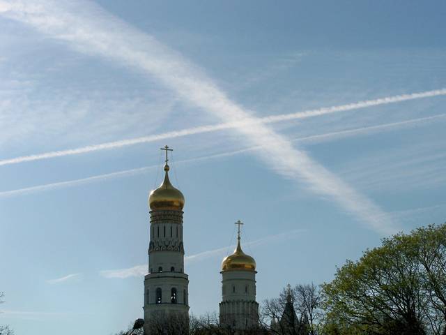 Распыление химтрейлов над Красной площадью, 27 апреля 2012 (ФОТО)Тем временем как официальные структуры продолжают давать свои отписки, распыление химтрейлов продолжаются полным ходом. В этот раз распыления производились прямо в районе Красной площади...
