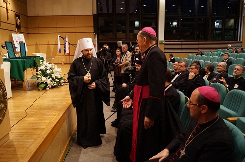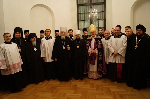 Вечером того же дня члены делегации Русской Православной Церкви, по благословению Святейшего Патриарха Московского и всея Руси Кирилла принимавшие участие в совместной российско-польской конференции «Будущее христианства в Европе: роль Церквей и народов Польши и России», присутствовали на вечерне в католическом кафедральном соборе Иоанна Крестителя в Варшаве.