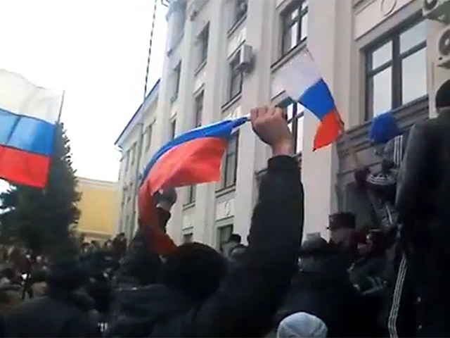 В Луганске прошел митинг за проведение Референдума. Пророссийски настроенные митингующие выдворили бандеровцев из здания обладминистрации