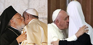 правил Церкви, таскается, обнимается, целуется и сослуживает с масонами-сатанистами папами римскими, раввинами в