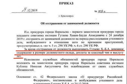 СУТЬ ВЛАСТИ В ЧЕТЫРЕХ ФОТО. Это не лечится - только ампутация...Фото 1. Прокурор Норильска Хаваж-Бауди Гутаев. Его вчера арестовали за взятку. Как пишут про него местные СМИ: "Прокуратура города при Гутаеве превратилась в бюро услуг. На планерках обсуждается, кому надо помочь и зачем". Полуграмотного чувака назначили прокурором большого города благодаря связям в Генпрокуратуре. У него есть инстаграм, @havaj_777, первое фото в нём: ![]() ⠀ Фото 2. С Альбиной Ковалёвой, советницей генпрокурора Чайки. Эта Ковалёва - "мамочка" всей прокурорской мафии. Работала с Чайкой ещё в Иркутске сто лет назад. ![]() ⠀ Фото 3. Самое интересное. Это приказ об отстранении Гутаева от занимаемой должности. Ну понятно: довольно странно ему быть прокурором Норильска, если он сидит в СИЗО за взятку. Только ньюанс. ЗА ВРЕМЯ ОТСТРАНЕНИЯ ЕМУ БУДУТ ВЫПЛАЧИВАТЬ И ОКЛАД, И ВСЕ ВЫПЛАТЫ. ![]() ⠀ То есть он брал взятки, попался, его упекли в СИЗО, но прокуратура решила, что пока идёт следствие, а это много месяцев, мы с вами из своего кармана будем выплачивать взяточнику и заплату, и надбавку за выслугу лет. ⠀ Если вы думаете, что это просто проявление гуманизма, то вот вам ⠀ Фото 4. Екатерина Муранова из Карелии. Мать-одиночка, воспитывает двух детей. Вчера её оштрафовали на 350 тысяч рублей за комментарий к посту Вконтакте. ![]() ⠀ Кремлю близок и дорог взяточник-прокурор. Даже если он попадется, о нем позаботятся. Зарплатку ему начислят. И надбавочки не забудут. А вот с трудом выживающую мать они никогда не пожалеют. Какие там подарки детям на Новый год. Плати, дрянь, ты же ругала нас в интернете. Сживём тебя со свету. ⠀ Путинская власть - власть людоедов и воров - антихристова власть!