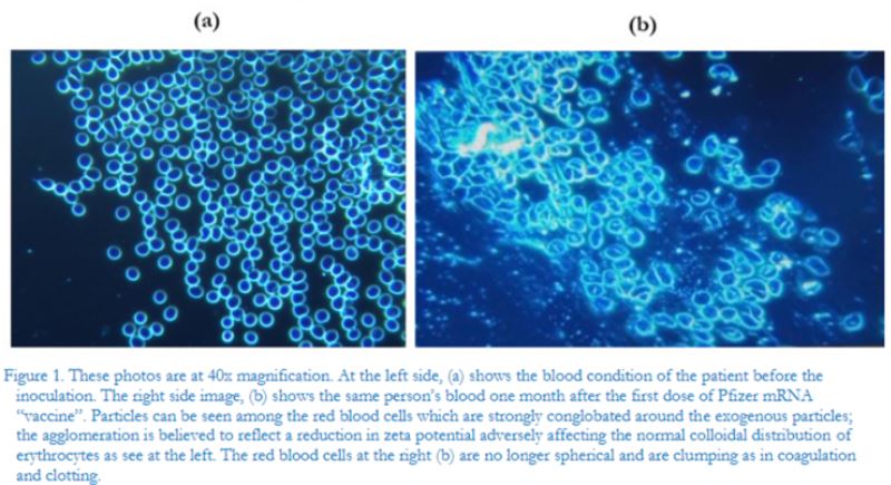 НОВОЕ ИССЛЕДОВАНИЕ ПОКАЗАЛО... Привитая кровь — это зараженная кровь! (ФОТО) Еще и еще раз повторяем, что ВСЕ жижи, независимо от страны, одинаковы в своей основе, т.к. разлиты из одной биллгейтовской "бочки". Никакой путинский жид-убийца Гинцбург никакого Спутника-V не изобретал. Он только этикетки наклеивал! Кому-то достаточно сказать, что в жижах содержатся клетки убитых младенцев - и этого человеку достаточно, чтобы отказаться от осквернения своего тела и души этими жижами. А кому-то нужно такого рода результаты научных исследований с фотографиями и видео. Помоги и вразуми, Господи, наших людей! Господи, помилуй! Новое исследование из Италии предполагает, что у каждого, кто был “полностью вакцинирован” от уханьского коронавируса (Covid-19), теперь зараженная кровь, отмеченная загадочными частицами различных размеров и форм. Итальянское исследование, опубликованное две недели назад в Международном журнале теории, практики и исследований вакцин (“IJVTPR”), показало, что почти у всех, кому была сделана инъекция, были отклонения после “вакцинации против Covid”. В крови 94% вакцинированных наблюдалась агрегация эритроцитов и присутствие частиц различных форм и размеров. Исследование, опубликованное в Международном журнале теории, практики и исследований вакцин (IJVTPR) "В исследовании, опубликованном в Международном журнале теории, практики и исследований вакцин (IJVTPR), которое началось в марте 2021 года, были изучены образцы крови 1006 пациентов, которым сделали укол, у которых впоследствии развились различные расстройства". Авторы исследования отметили, что предполагается, что “вакцины” содержат, по крайней мере, спайковый белок из SARS–CoV-2, но, как известно, также содержат инородные частицы, которых, как утверждали многие промоутеры экспериментальных инъекций, в них вообще не было. “Среди этих инородных компонентов есть металлические предметы, как было продемонстрировано ранее в этом журнале Lee et al. (2022), что подтверждается нашими результатами”. Из проанализированных 1006 случаев только у 58 – что составляет 5,77% от общего числа – при микроскопическом анализе после последней инъекции мРНК смесью Moderna или Pfizer – была полностью нормальная гематологическая картина. Кровь 948 – 94% участников исследования – показала скопление эритроцитов и присутствие частиц различной формы и размера неясного происхождения через месяц после инъекции мРНК. "У 12 субъектов кровь была исследована тем же методом перед вакцинацией, что показало совершенно нормальное гематологическое распределение. Изменения, обнаруженные после прививки инъекций мРНК, еще больше усиливают подозрение, что изменения были вызваны самими так называемыми “вакцинами”. Мы сообщаем о 4 клинических случаях, выбранных в качестве репрезентативных для всей серии случаев. Необходимы дальнейшие исследования, чтобы определить точную природу частиц, обнаруженных в крови, и определить возможные решения проблем, которые они, очевидно, вызывают. Benzi Cipelli, R., Giovannini, F., & Pisano, G. (2022). Микроскопический анализ крови 1006 человек с симптомами после инъекций мРНК против КОВИДА от Pfizer / BioNTech или Moderna в темном поле. Международный журнал теории, практики и исследований вакцин, 2 (2), 385-444." https://doi.org/10.56098/ijvtpr.v2i2.47 Авторы исследования опубликовали фотографии 4 клинических случаев, которые “выявляют странные явления в 