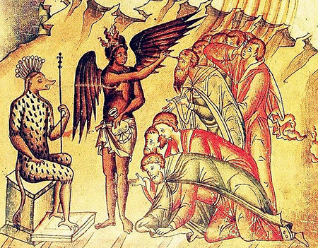 Неподалёку была река из кипящей смолы. Туда входили и оттуда выходили усопшие. Их одежды были белыми, хотя они и мучились, горели в кипящей смоле.