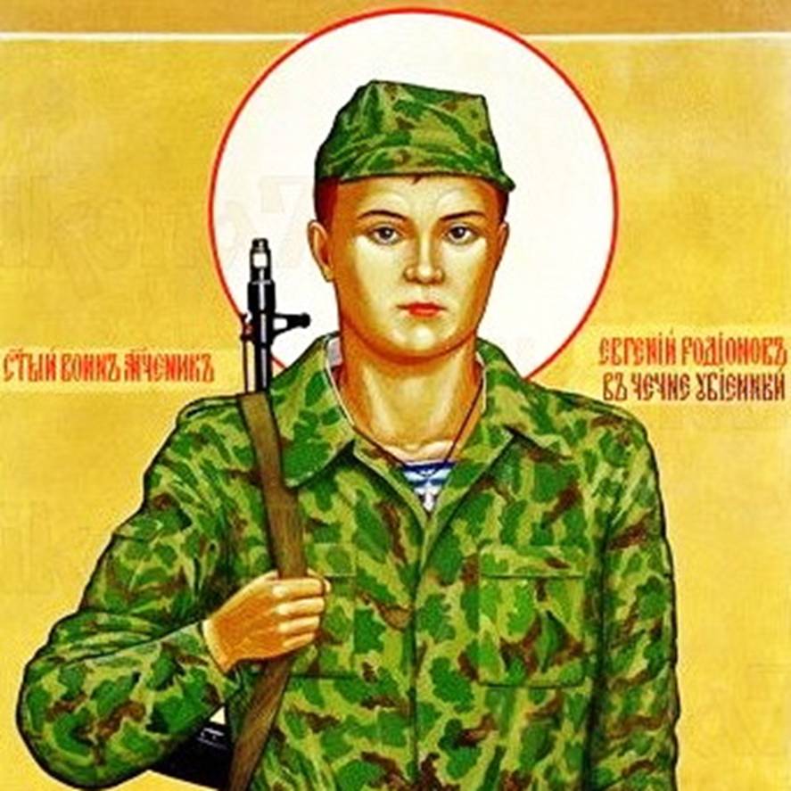 СВЯТОЙ ЕВГЕНИЙ РОДИОНОВ. Часть 9-я. 30-летию Мученического, христианского подвига воина Евгения![]() 30-летию Мученического подвига воина Евгения Родионова и иже с ним пострадавших.Выпуск 9-й.30 лет назад, 23 мая 1996 года, воин Евгений Родионов прославился мученическим подвигом в Чечне.Не снявший нательного креста с груди, вопреки требованиям озверевших ваххабитов, молодой пограничник Евгений Родионов и три его сослуживца, выстояли, не отреклись от Прав ославной веры. Сто дней и ночей их жестоко избивали, истязали. Требовали, чтобы они предали свою Веру, перешли в ислам, начали воевать против своих. У пленников была возможность остановить побои и издевательства, остаться в живых. Нужно было только отречься от Христа. Наши солдаты этого не сделали. Русские солдаты выстояли. Остались верными Православию.23 мая 1996 года, в день рождения Евгения Родионова, исламистские бандиты отрезали ему голову, были казнены и трое его сослуживцев. (Из книги священника Виктора Кузнецова «Он выбрал Крест» 4-е издание, 2026 г.) «Аще кто хощет по Мне идти, да отвержется себе, и возмет крест свой, и по Мне грядет».(Мф. 26, 24). ![]() Нательный крест воина Евгения Родионова. Три дуба под Бамутом Весна 1999 года. Подмосковье. Подольский район. То, что поведала мать солдата, не может уместиться ни в какую телепередачу и должно быть доведено до каждого русского по духу человека. Это– рассказ о юном исповеднике христианской веры, совершившем свой подвиг в конце уходящего столетия. А ещё это рассказ о мире, в котором мы живём, о войне, в которой мы участвуем, о нашей Родине и о нас самих. Крещён Евгений был в детстве. Как и большинство советских людей, родители его в 70-х годах редко вспоминали о Боге. Сын же, с детства отличавшийся упорством, был другим. В двенадцать лет – шёл «перестроечный» 89-й год – он надел на себя крестик и уже более не снимал его. Любовь Васильевна как-то стала увещевать мальчишку: «Ты хотя бы иногда, на людях, прячь крест, не показывай, что носишь его». «Никогда, мама, так больше не говори», – попросил сын. Рос он физически крепким и занимался боксом. Даже добился второго места в турнире, но внезапно ушёл из секции, сказав только: «Не могу бить людей по лицу». В дальнейшем ходил на борьбу. Духовное состояние сына оставалось для матери загадкой. «Я ведь сейчас сама у него Вере учусь, – говорит она, – а тогда всё внимание работе уделяла. Нужно ведь было накормить, одеть. Чтобы обделенным он себя не чувствовал. Женя рос без отца, с мужем мы разошлись. Но сын любил нас обоих. Из-за этой любви никого больше себе не искала. Жила для сына». Мальчик он был незамкнутый, друзья были. Но что-то в себе Женя носил, что-то обдумывал. Ездил на службы в Подольский храм. Всегда носил на себе христианский пояс «Живый в помощи Вышняго в крови Бога Небесного водворится...» В нём и в армию поехал. Когда пришла повестка – в военкомат сразу пошёл, от службы не увиливал. Как парня крепкого, Евгения определи в пограничные войска. Из «учебки» он писал нежные, полные любви, стихи. Читая их, она уже тогда почувствовала, что сын словно прощается с ней. Хождение по кругам земного ада для Любови Васильевны началось с получения телеграммы, извещавшей о том, что её сын самовольно оставил свою воинскую часть. Некоторое время прошло в переписке с воинской частью. Она убеждала, что сын не мог дезертировать. Ей не верили 