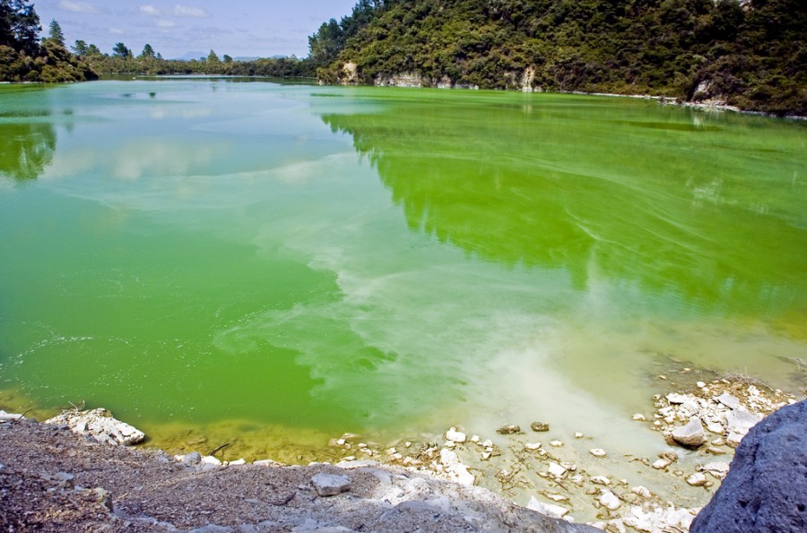 5. Озеро Ngakoro в Новой Зеландии радует глаз приятным зеленым цветом.