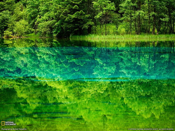 7. Озеро Пяти Цветов в Цзючжайгоу меняет свой оттенок от желтого до темно-зеленого. Большую часть года вода в нем алмазно-синего цвета. Множество тайн и загадок связано с этим озером.