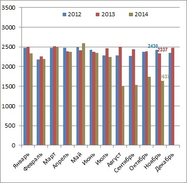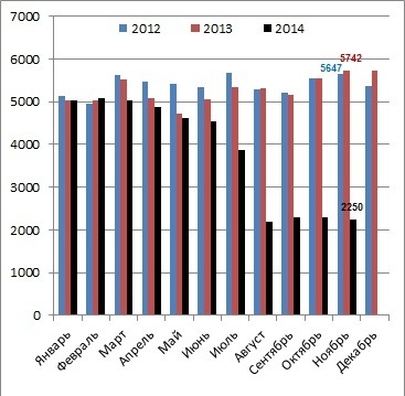 Дизельного топлива производится на 20,3% меньше, бензинов — почти на 30%. Остро необходимого для электростанций мазута произведено в ноябре лишь 14 тыс. тонн — это сразу в восемь раз меньше, чем в ноябре-2013.