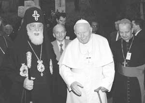 поможет установлению мира во всем регионе». На встрече папы Римского и Предстоятеля Грузинской Православной Церкви было принято совместное заявление. Они призвали глав государств, все международное сообщество проявить волю во имя спасения мира от войн, насилия и терроризма на пороге третьего тысячелетия и создать условия для установления мира во всем мире. В обращении подчеркивалось, что терроризм стал новой и реальной опасностью для всего мира. Между тем, в ряде периодических изданий отмечалось, что на Блаженнейшего Патриарха Илию II все-таки было оказано сильное давление: «Грузия против визита Папы», «Шеварднадзе выкручивает руки Патриарху». А прихожане Мцхетско-Тбилисской епархии тогда писали Иоанну Павлу II: «Несколько месяцев назад православные христиане Грузии со